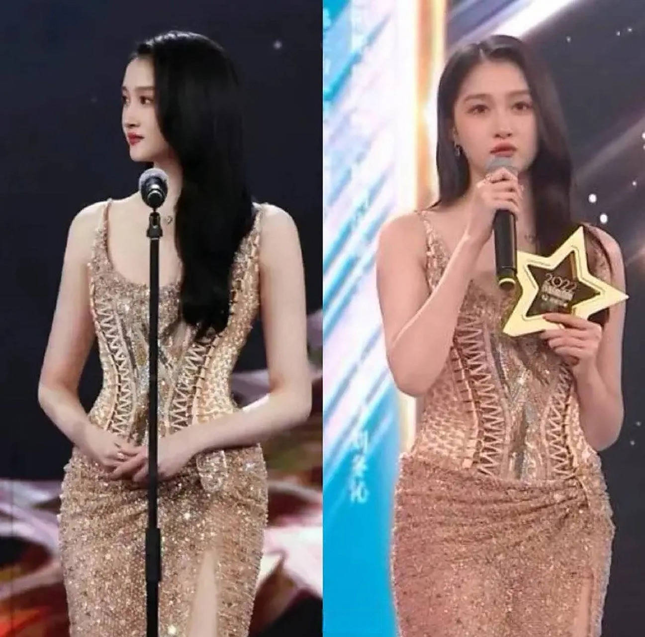面对争议,工作室惯用「镜头角度问题」来回应,这次却被时尚博主扒出实锤:第二套礼服的设计本就有缺陷,紧身裹胸+露肩剪裁恰好暴露了关晓彤的身材短板。更尴尬的是,有网友翻出她去年《小巷人家》的剧照对比,同样是校服造型,那时的少女感能掐出水,如今却被吐槽「像刚生完孩子」。其实26岁的关晓彤身高172cm,体重常年维持在90斤左右,副乳问题更多是遗传因素导致。只是在「白幼瘦」审美盛行的娱乐圈,女明星连0.5cm的赘肉都要被无限放大,或许我们该反思:当镜头开始审判女性的腋下脂肪时,究竟是谁在制造容貌焦虑?